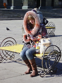 I like this photo of three people at a Moscow bus stop. Because good things come in threes.